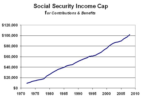 The amount employees have deducted from their paychecks is determined by the Social Security tax rate and annual income “caps” – the maximum amount of wages subject to the tax. The Social Security tax rate has been flat for almost 20 years; and the income cap has consistently increased over the years.