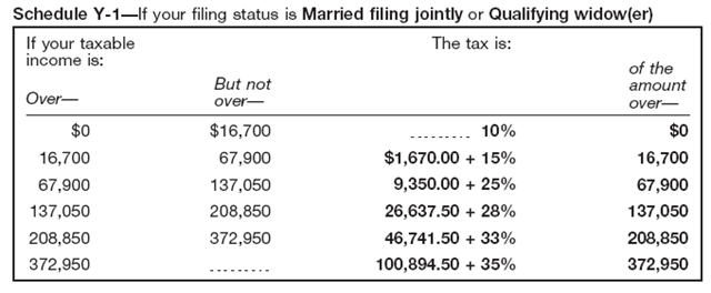 So, we can just pull their number from the $200,000 taxable income line of the 2009 schedule Y tax table (married filing jointly).