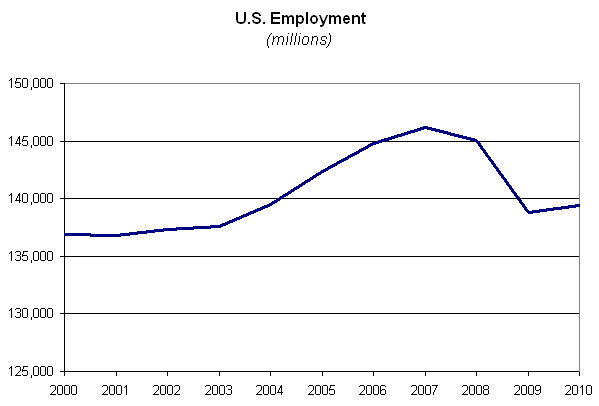 - Employment was flat from 2000 to 2003 … remember the bursting of the dot com bubble and the 9-11 terrorist attacks ?