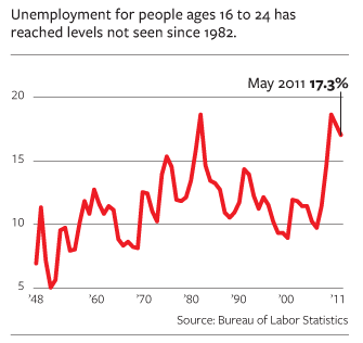More than 17 percent of 16-to-24-year-olds who are looking for work can’t find a job.