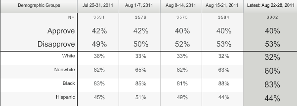 And according to Gallup, 83% of blacks approve of the job that Obama is doing as President …