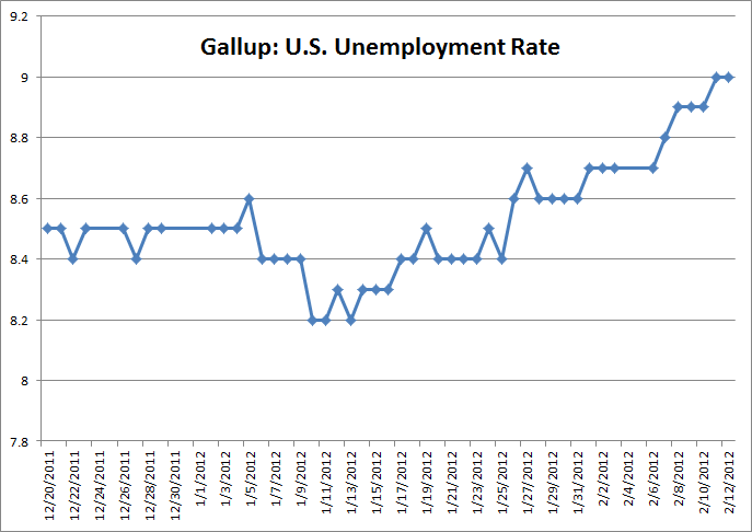 A couple of weeks ago – when Team Obama was victory lapping over the unemployment rate dropping to 8.3% – we told readers to watch the Gallup daily unemployment surveys as a harbinger of things to come.