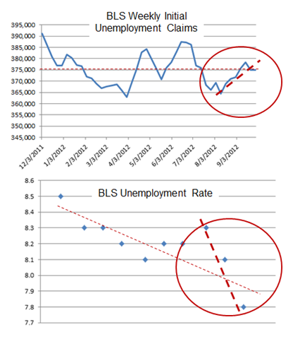 The BLS has been reporting unemployment claims pretty level for the year … but increasing lately.