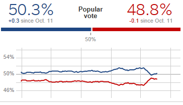And, Silver continued to show Obama leading in the popular vote by 1.5 points … with a majority.