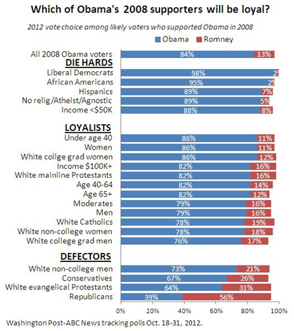The Wash Post did an analysis of 16% of Obama’s ‘08 supporters who are jumpin’ ship.