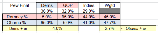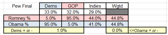 But, Pew’s raw numbers were 48% to 45% … they then allocated 4 points of undecided voters 50/50. Huh?