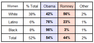 But, digging deeper, Romney may have lost “women” by 10 points, but he won white women by 14 points.