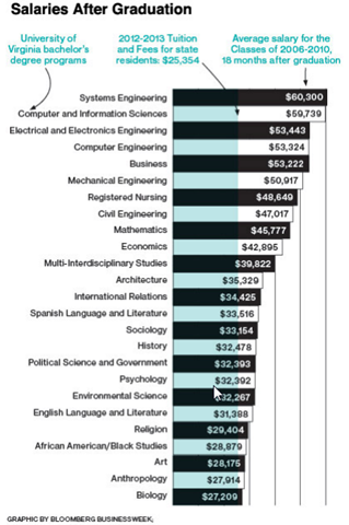 According to a CollegeMeasures.org study of Univ. of Virgina grads that was summarized in Business Week …