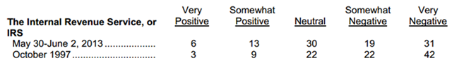 That means that about half didn’t have a negative view of the IRS despite the scandals.