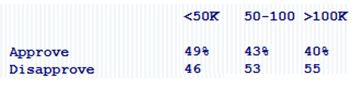 49% of folks earning less than $50,000 think Obama is doing a fine job … he’s underwater with all other income groups.