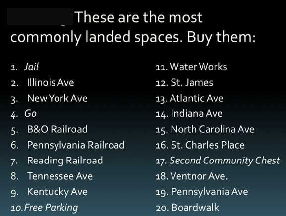 Some takeaways from the Business Insider’s guide to dominating at Monopoly …