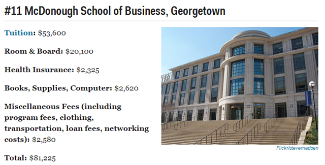 Business Insider ranked the MSB MBA program as the 11th most expensive.