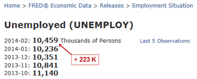 The number of unemployed folks increased by 223,000 … more than than number of jobs added.