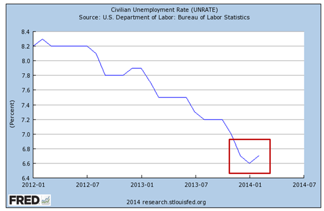 So, the unemployment rate ticked up 6.7%.