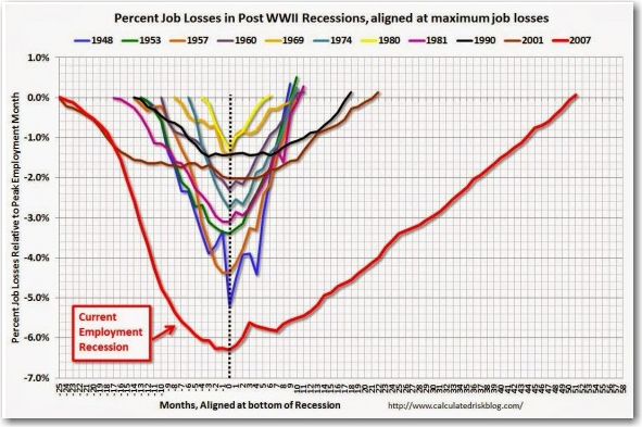 First, compared to other recessions, it has taken the economy a lot longer to regain the number jobs.