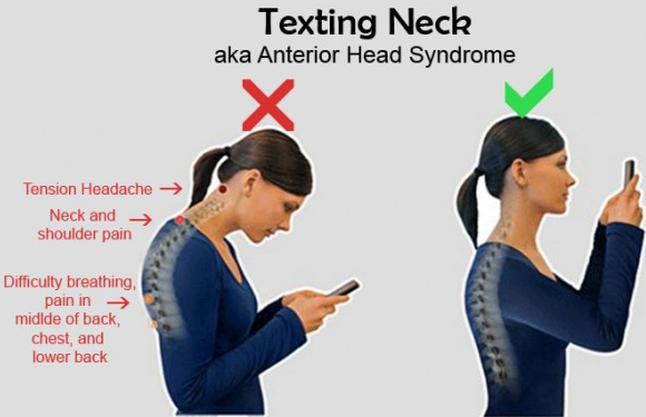 The second emerging health issue is Anterior Head Syndrome … or “texting neck”