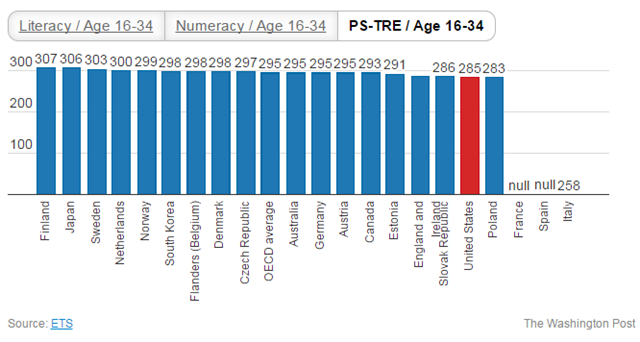 According to the Washington Post, ETS (the College Board folks) analyzed the results of a test given by the Organization for Economic Co-operation and Development (OECD).