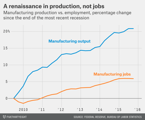 Interesting analysis from Nate Silver’s  535.com titled Manufacturing Jobs Are Never Coming Back
