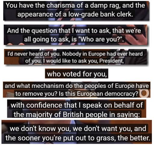 Nigel Farage – a Brit member of the European Parliament and leader of the Brexit campaign – made that point colorfully clear in a classic takedown on the floor of the EP.