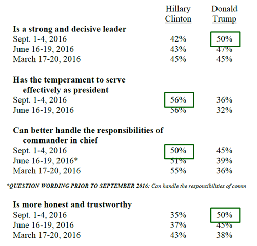 50% rate Trump as a “strong & decisive leader” … only 42% rate Hillary as such