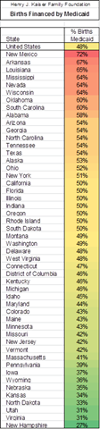 Medicaid births are a majority in 17 states … with New Mexico (72%), Arkansas (67%) and Louisiana (65%) leading the pack.