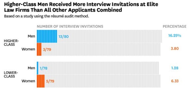 Even though higher-class women were seen as just as good “fits” as higher-class men, attorneys declined to invite these women to interview because they believed they were the least committed to working a demanding job.