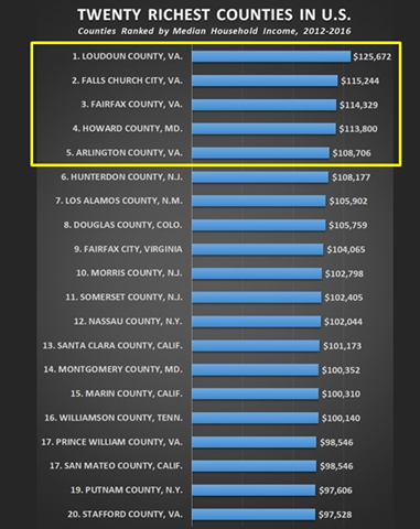 The five richest counties in the United States are all suburbs of Washington, D.C.