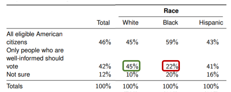 Only 22% of Blacks say that only well-informed citizens should vote.