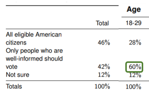 Overall, it was a split vote … with a slight plurality (46%) saying that all citizens should vote and 42% saying that only the well-informed should vote.