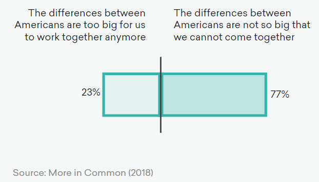 First, most Americans are tired of this “us-versus-them” mindset and are eager to find common ground.