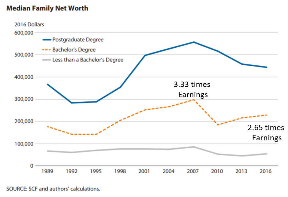 In addition, many of the degreed folks got banged during the financial crisis when house values (a main component of net worth) fell precipitously.