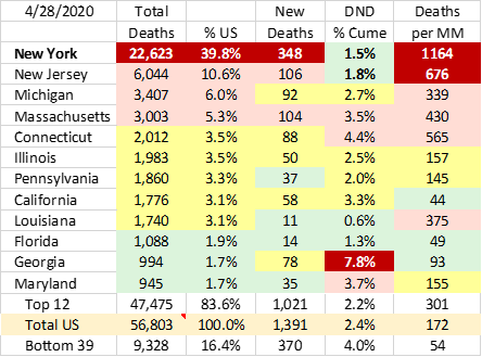 Bottom 39 Average = 54 Deaths/Million - GA +70 … likely under-reporting