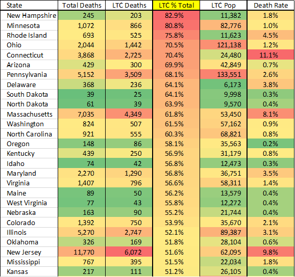States with more than 1,000 total Covid deaths and more than 750 LTC deaths):