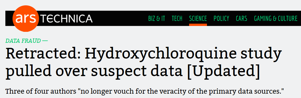 A couple of weeks ago, The Lancet — “a prestigious U.K. medical journal” — published a bombshell study on hydroxychloroquine (HCQ).