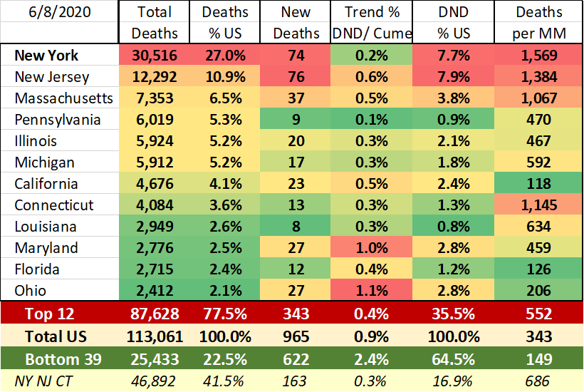 Caution: 16 states (none in top 12) didn’t report any deaths