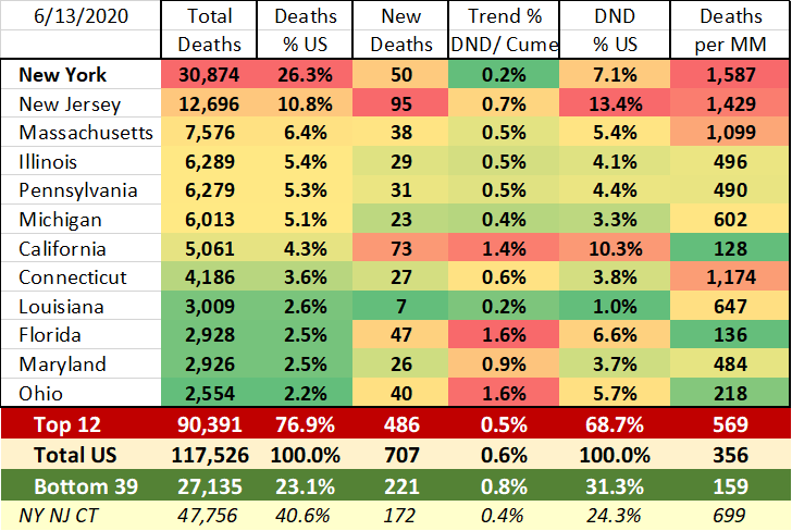 Bottom 39 states with 25 or more New Deaths: