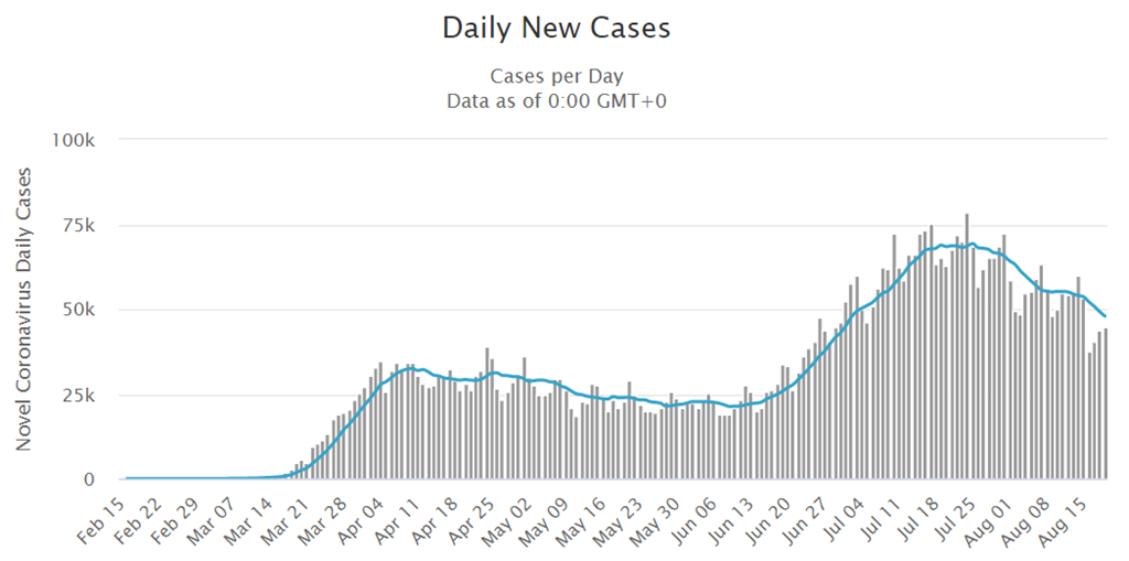 > 7-day average 47,701 (below 14-day average since July 26)