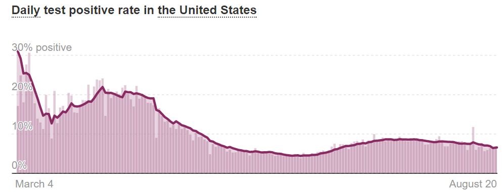 That’s also good news but, again, “positivity” is an equivocal metric since it’s impacted by the mix of people being tested.