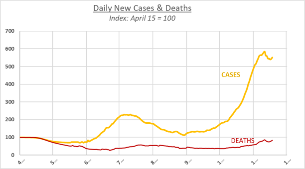 2,810 Daily New Deaths (peak 2,824 April 21)