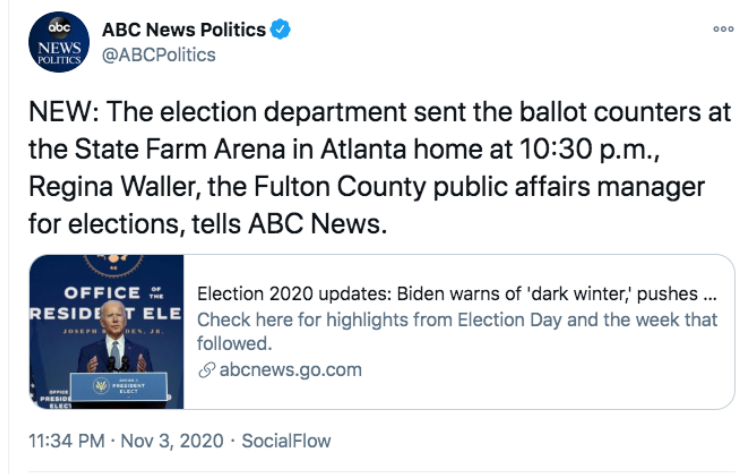 ABC — not exactly a Trump-leaning conspirator — tweeted on election night: