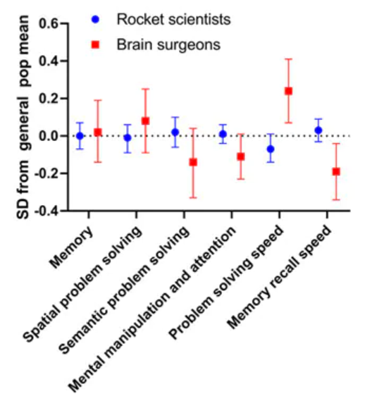 > But, that edge was offset: the brain surgeons scored below average on memory recall speed.