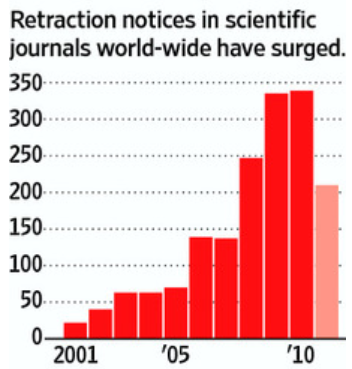 Since 2001, while the number of papers published in research journals has risen 44%, the number retracted has leapt more than 15-fold.