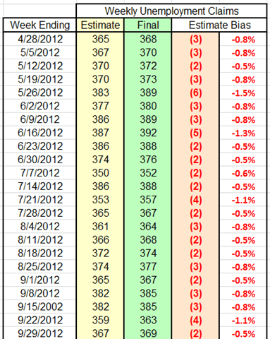 Most important, for at least the last 22 election season weeks, the same BLS that reports the unemployment statistics has systematically underreported weekly initial unemployment claims by an average of roughly 1% – about 3,000 claims per week – and then revised the estimates up the next week.