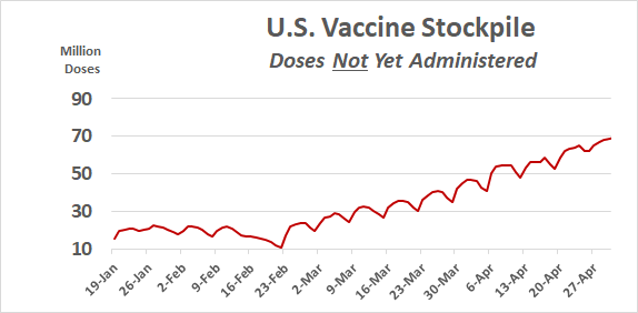 There are about 67.5 unvaccinated adults (100% minus 70% = 30% times 225 million equals 67.5).