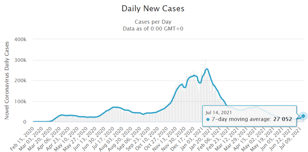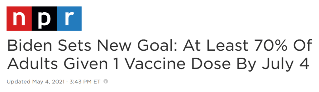 Currently, the CDC is reporting that about 70% of the adult population (18 and over) has been vaccinated.