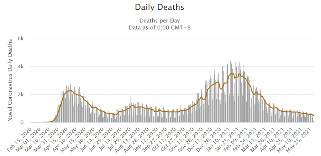 Based on these rough estimates, we won’t move above our current level of coronavirus exposure even if 100% of the population gets vaccinated.