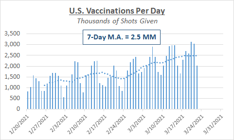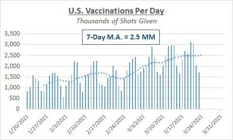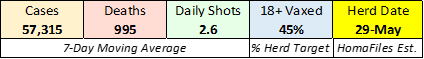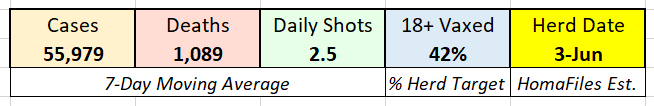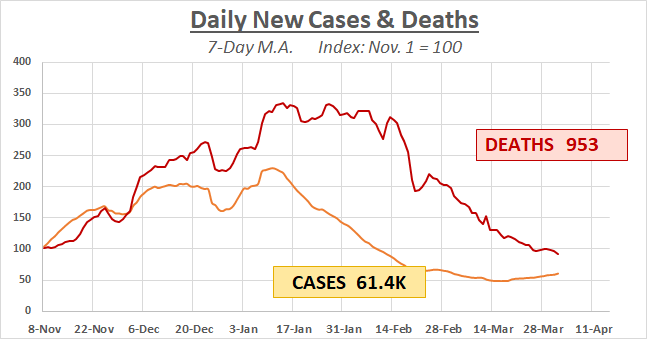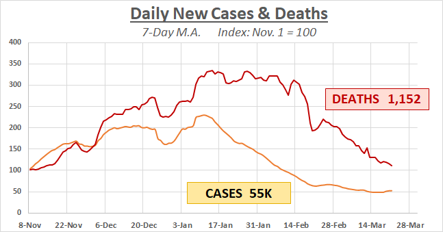 So, my advice: Take case counts with a grain of salt, be encouraged by vaccination rates and stay focused on the averaged number of daily new deaths (DNDs).