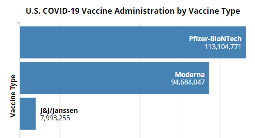 In clinal trials, Pfizer & Moderna scored higher in overall protection (roughly 95% against symptomatic infections) than the J&J vaccine (72%) in the U.S.