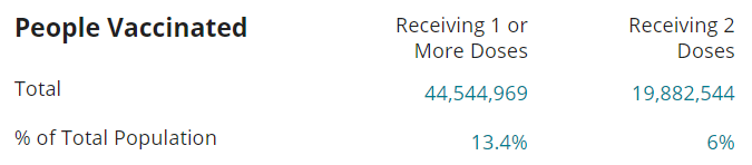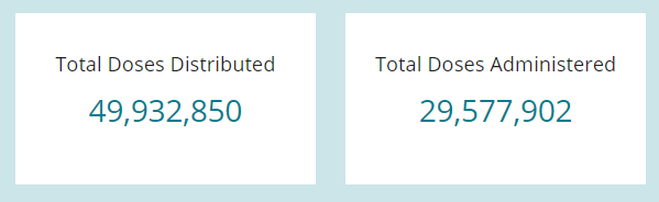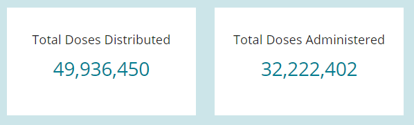 - 50 million doses have been received and distributed (to states) by the Feds