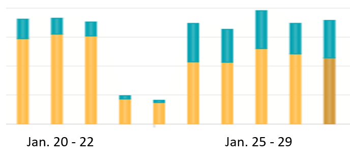Yep, the blue section of the bars is getting proportionately bigger from week-to-week.